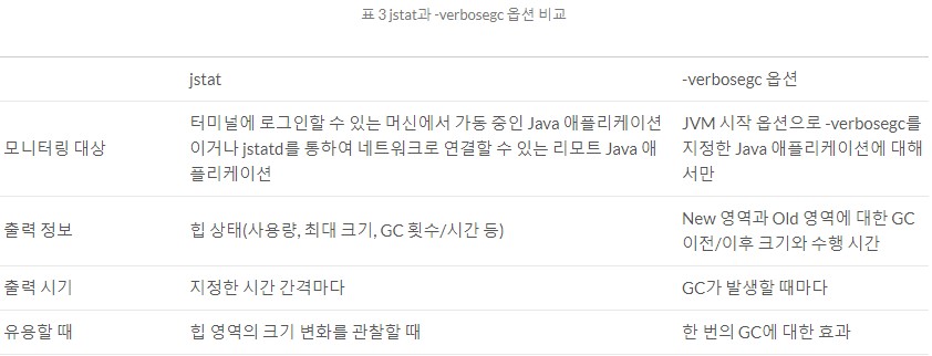 jstat과 -verbosegc 옵션의 비교